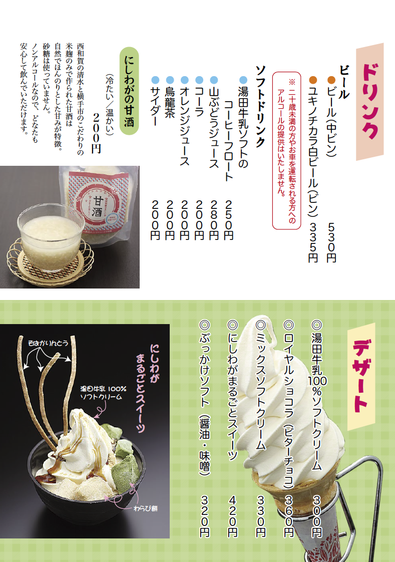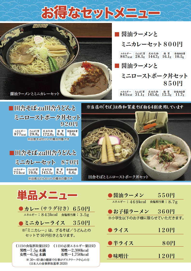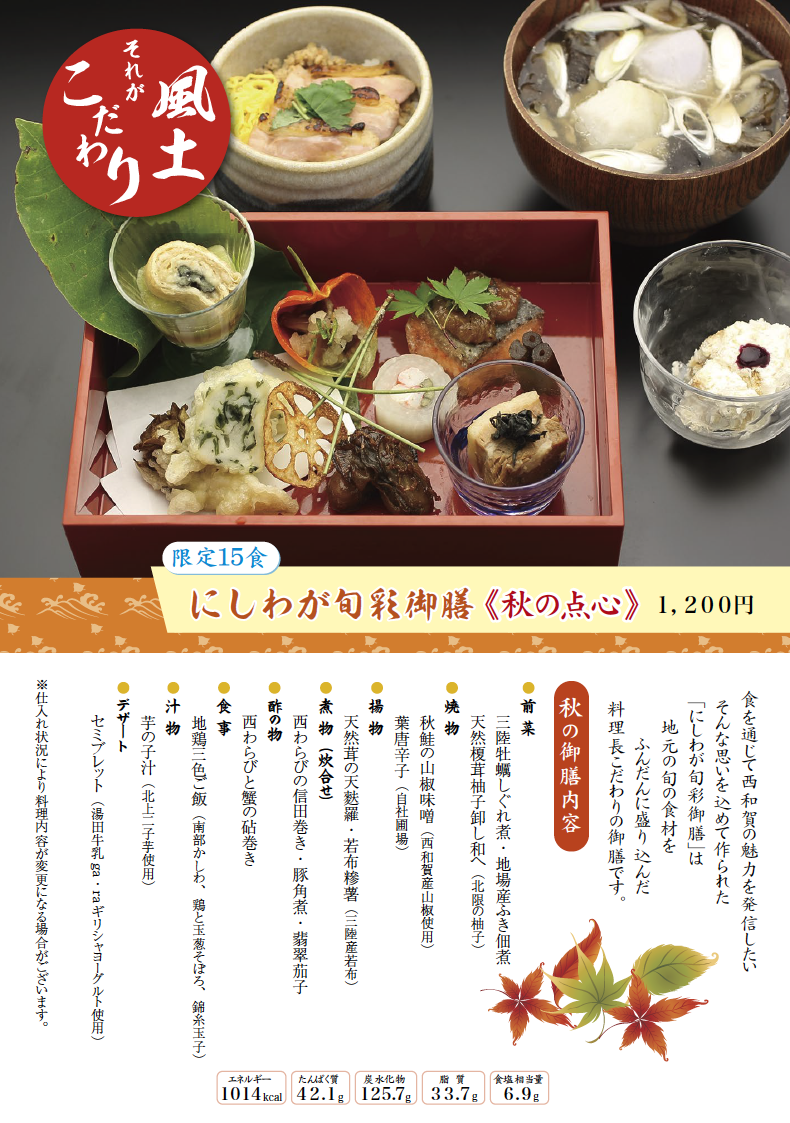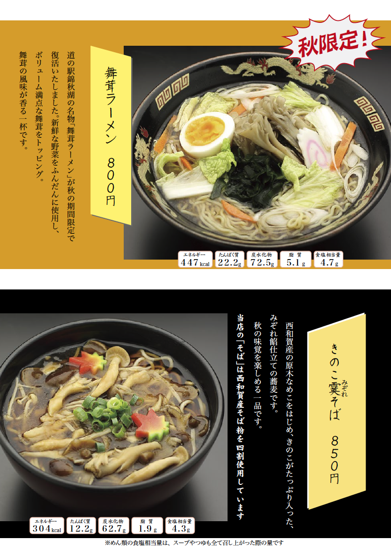 Home › お知らせ › 秋のレストランメニューのご案内(9/26〜) 2020-09-26 秋のレストランメニューのご案内(9/26〜) 道の駅錦秋湖で、9/26(土)よりご提供します秋のレストランメニューをご案内させて頂きます。 タグ: レストランメニュー, 道の駅錦秋湖 関連記事 キャッシュレス決済時の5%還元について(11/8) 年末年始の営業について 西和賀まるごとラーメンの提供開始について(11/30~) 春のレストランメニューのご案内(3/26〜) 夏のレストランメニューのご案内(7/20〜) ちょっとお得な西わらびキャンペーン 西和賀の新そば提供を始めました(10/17〜10/25) コメントを残す コメントをキャンセルメールアドレスが公開されることはありません。 ※ が付いている欄は必須項目ですコメント ※ 名前 ※ メール ※ サイト 次回のコメントで使用するためブラウザーに自分の名前、メールアドレス、サイトを保存する。 上に表示された文字を入力してください。 Δ