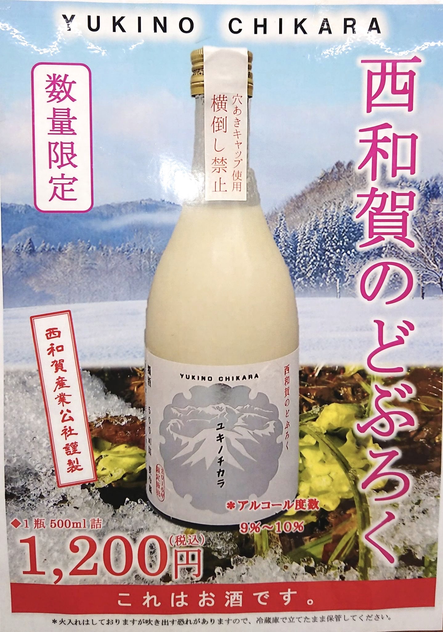 西和賀産どぶろく〈ユキノチカラ〉の販売について